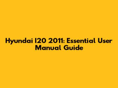 Hyundai I20 2011: Essential User Manual Guide