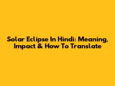 Solar Eclipse In Hindi: Meaning, Impact & How To Translate