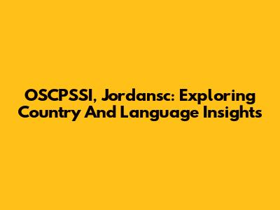 OSCPSSI, Jordansc: Exploring Country And Language Insights