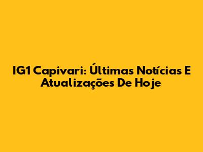 IG1 Capivari: Últimas Notícias E Atualizações De Hoje