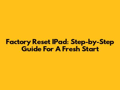 Factory Reset IPad: Step-by-Step Guide For A Fresh Start
