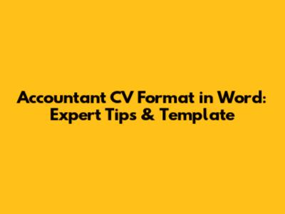 Crafting a compelling accountant CV is crucial for landing your dream job. A well-structured CV highlights your skills, experience, and qualifications, grabbing the attention of potential employers. If you're an accountant looking to create a standout CV, using a Word format offers flexibility and ease of customization. Let’s dive into creating an effective CV format in Word specifically tailored for accountants.