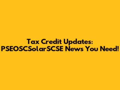 Tax Credit Updates: PSEOSCSolarSCSE News You Need!