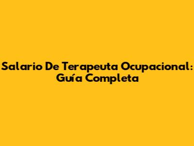 Salario De Terapeuta Ocupacional: Guía Completa