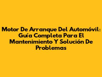 Motor De Arranque Del Automóvil: Guía Completa Para El Mantenimiento Y Solución De Problemas