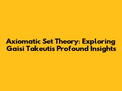 Hey folks, ever heard of axiomatic set theory? It's a fundamental branch of mathematics that digs deep into the nature of sets – those collections of objects we use to build just about everything in math! Today, we're gonna dive into this fascinating world, with a special focus on the brilliant work of Gaisi Takeuti. He's a name you should know in this field, and we're about to see why.