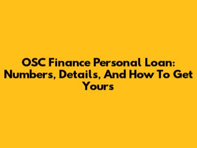 OSC Finance Personal Loan: Numbers, Details, And How To Get Yours