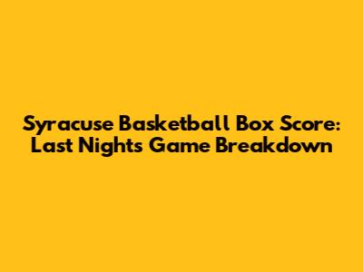 Syracuse Basketball Box Score: Last Night's Game Breakdown