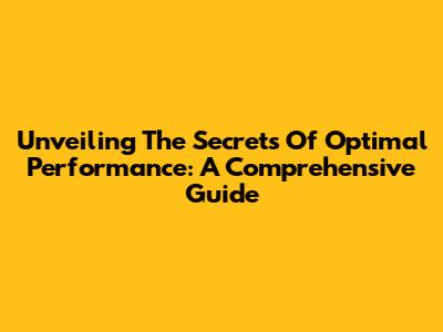 Unveiling The Secrets Of Optimal Performance: A Comprehensive Guide