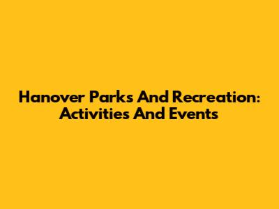 Hanover Parks And Recreation: Activities And Events