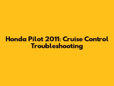 Honda Pilot 2011: Cruise Control Troubleshooting