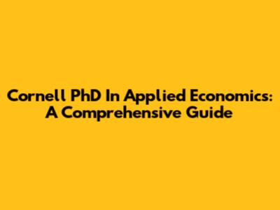 Cornell PhD In Applied Economics: A Comprehensive Guide