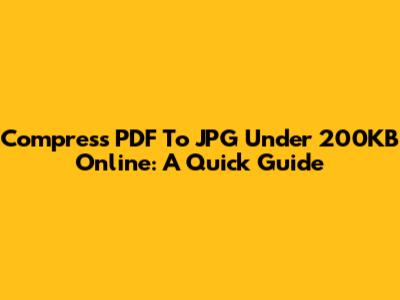 Compress PDF To JPG Under 200KB Online: A Quick Guide