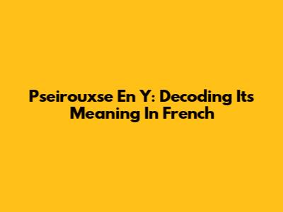 Pseirouxse En Y: Decoding Its Meaning In French