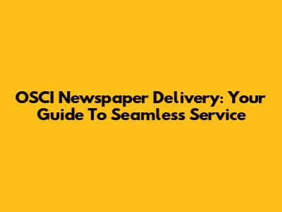 OSCI Newspaper Delivery: Your Guide To Seamless Service