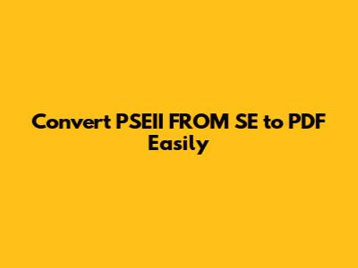 Hey everyone! Ever found yourself staring at a PSEII FROM SE file and wishing you could easily convert it into a PDF? You know, the kind of format that's universally compatible and easy to share? Well, you're in the right place, guys! We're diving deep into the world of file conversions, specifically focusing on how to tackle those pesky PSEII FROM SE documents and turn them into handy PDFs. It's a common problem, especially if you're dealing with specific software or formats that aren't as widely supported. Sometimes, you just need that universal format, right? That's where the magic of PDF conversion comes in. We'll be exploring different methods, breaking them down step-by-step, and making sure you can get your files ready for printing, sharing, or archiving without a hitch. So, stick around, and let's get your PSEII FROM SE files sorted into PDFs, pronto!