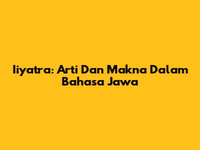 Iiyatra: Arti Dan Makna Dalam Bahasa Jawa
