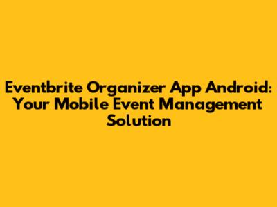 Hey event organizers! Are you looking for a way to manage your events on the go? The Eventbrite Organizer App for Android might just be what you need. In this article, we'll dive deep into everything you need to know about this handy app, from its features to how to use it effectively. Let's get started!