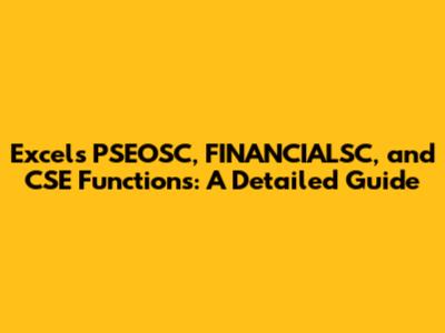Hey everyone! Today, we're diving deep into some powerful Excel functions that can seriously up your financial game. We're talking about PSEOSC, FINANCIALSC, and CSE. These functions, while maybe not household names, pack a punch when it comes to financial calculations and analysis. So, grab your coffee, and let's get started! We'll break down each function, explain how they work, and show you some real-world examples to help you become an Excel wizard. Understanding these tools can transform the way you approach financial modeling, making your analysis more accurate and efficient. Let's start by unpacking what these functions are all about and why they're useful.