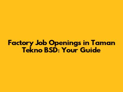 Hey there, future factory workers! Are you on the hunt for factory job openings in Taman Tekno BSD? You've come to the right place! Taman Tekno BSD, a vibrant hub of technological innovation and industrial activity, is buzzing with opportunities for skilled and enthusiastic individuals like you. This comprehensive guide will walk you through everything you need to know about navigating the job market in Taman Tekno, from identifying potential employers to acing your interviews. So, grab a cup of coffee, sit back, and let's dive into the exciting world of factory jobs in BSD!