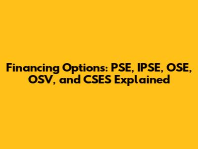 Understanding the various financing options available can be a game-changer for businesses and individuals alike. In this article, we'll dive deep into PSE (Private Sector Engagement), IPSE (Independent Professionals and Self-Employed), OSE (Owner-occupied Small Enterprise), OSV (Offshore Special Vehicle) , Olvos, CSES (Community Supported Economic System), and Ese financing. We'll break down what each of these terms means, how they work, and who can benefit from them. Whether you're a seasoned entrepreneur or just starting, grasping these concepts can open doors to new opportunities and financial strategies.