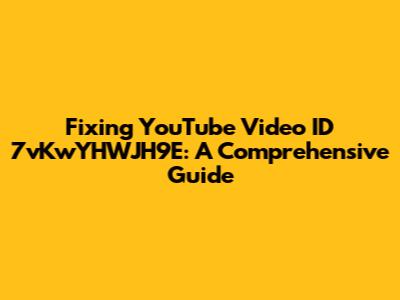 Fixing YouTube Video ID 7vKwYHWJH9E: A Comprehensive Guide