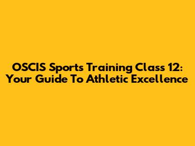 OSCIS Sports Training Class 12: Your Guide To Athletic Excellence