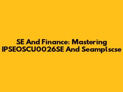 SE And Finance: Mastering IPSEOSCU0026SE And Seamplscse