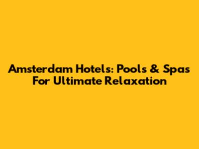 Amsterdam Hotels: Pools & Spas For Ultimate Relaxation