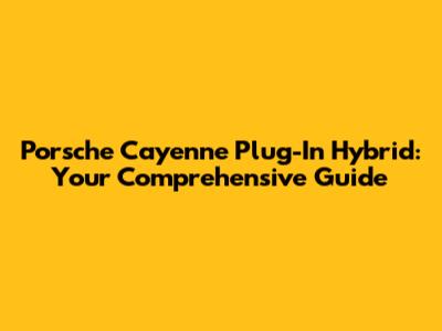 Porsche Cayenne Plug-In Hybrid: Your Comprehensive Guide