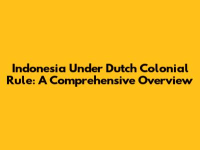 Indonesia Under Dutch Colonial Rule: A Comprehensive Overview
