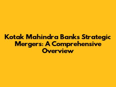 Kotak Mahindra Bank's Strategic Mergers: A Comprehensive Overview