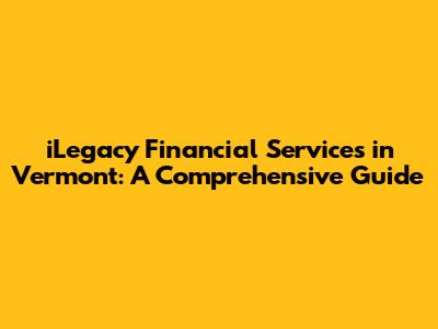 Hey everyone! Today, we're diving deep into iLegacy Financial Services in Vermont. We'll explore what they offer, how they work, and why they might be a good fit for your financial needs. This guide is designed to be super informative, covering everything from investment strategies to retirement planning, all tailored to the Vermont landscape. So, let's get started, shall we?