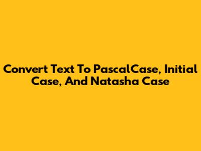 Convert Text To PascalCase, Initial Case, And Natasha Case