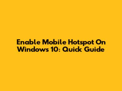 Enable Mobile Hotspot On Windows 10: Quick Guide
