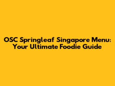 OSC Springleaf Singapore Menu: Your Ultimate Foodie Guide