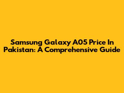 Samsung Galaxy A05 Price In Pakistan: A Comprehensive Guide