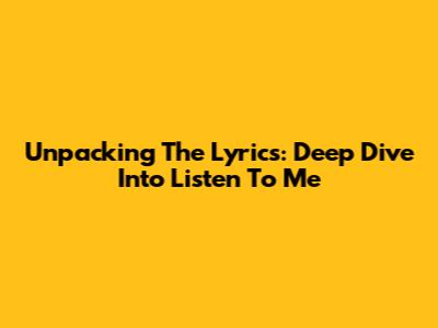 Unpacking The Lyrics: Deep Dive Into 'Listen To Me'