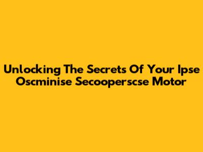 Unlocking The Secrets Of Your Ipse Oscminise Secooperscse Motor