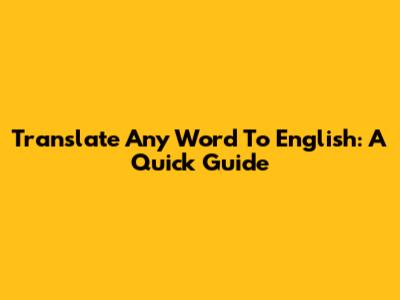 Translate Any Word To English: A Quick Guide