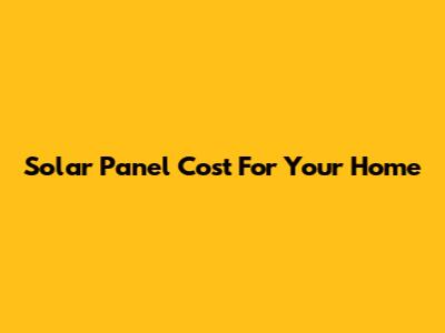 Solar Panel Cost For Your Home