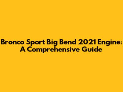 Bronco Sport Big Bend 2021 Engine: A Comprehensive Guide