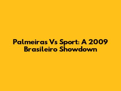Palmeiras Vs Sport: A 2009 Brasileiro Showdown