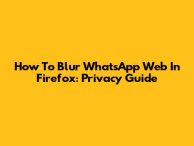 How To Blur WhatsApp Web In Firefox: Privacy Guide