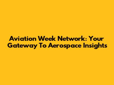 Aviation Week Network: Your Gateway To Aerospace Insights