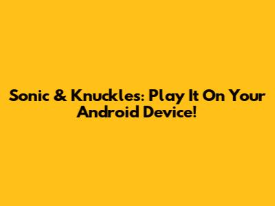 Sonic & Knuckles: Play It On Your Android Device!