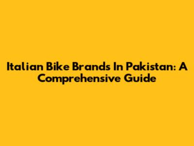 Italian Bike Brands In Pakistan: A Comprehensive Guide