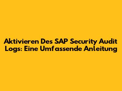 Aktivieren Des SAP Security Audit Logs: Eine Umfassende Anleitung