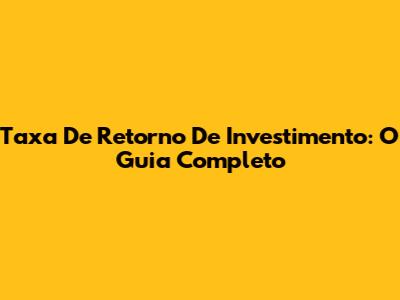 Taxa De Retorno De Investimento: O Guia Completo