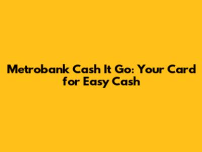 Hey guys! Ever found yourself in a situation where you need some quick cash but don't want to go through the hassle of a traditional loan? Well, Metrobank might just have the perfect solution for you with their Metrobank Cash It Go credit card. This card is designed for those moments when you need financial flexibility, allowing you to convert a portion of your credit limit into cash. It's super convenient and can be a lifesaver for unexpected expenses, emergency fund top-ups, or even planned big purchases that require immediate cash. We're going to dive deep into what makes this card tick, who it's for, and how you can make the most out of its features. So, buckle up, and let's explore the world of easy cash access with Metrobank!